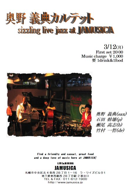 - 奥野義典(sax) 石田幹雄(p) 瀬尾高志(b) 竹村一哲(dr)