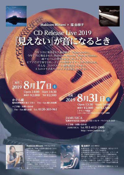 - ※当初予定しておりました、「高野雅絵 with 本山禎朗 CD “Sky and Sea” 完成記念ライブ」は都合により高野雅絵さんが参加できなくなりましたので、下記に変更させていただきます、ご了承ください。ぜひお越しください!