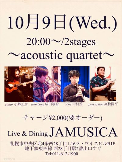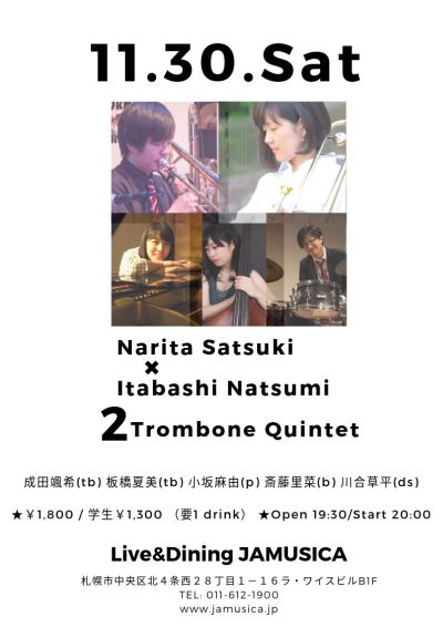 - 成田颯希(tb) 板橋夏美(tb) 小坂麻由(p) 斎藤里菜(b) 佐藤賢(ds)