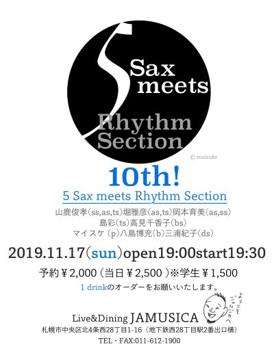- 奥野義典(as) 佐々木梨子(as) 平田晃一(gt) 本山禎朗(pf) 秋田祐二(b) 小山彰太(ds)
