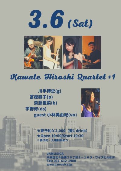 - 川手博史(g) 富樫範子(p) 斎藤里菜(b) 宇野修(ds) guest 長沼発(gt)