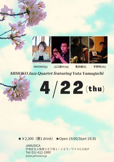 - 佐々木梨子(sax) 本山禎朗(p) 伊藤未央(b) 宇野修(ds)